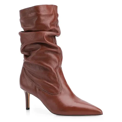 A bota slouch é aquele tipo de peça que está sempre com o cano meio “caidinho”, com umas dobrinhas que deixam o look mais estiloso. Assim, ela também é chamada de bota enrugada ou franzida por causa justamente desse jeitinho molinho dela.