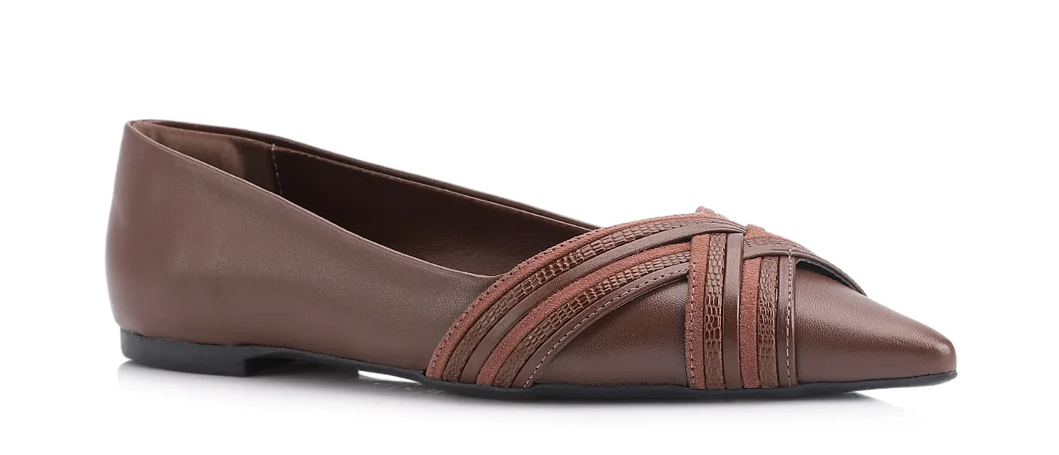 Mocassins e Sapatilhas de Bico Fino: Provando que elegância não depende de altura, o mocassim em couro ou a sapatilha de bico fino são sinônimos de conforto sofisticado. São os sapatos que a acompanham no dia a dia, sem nunca perder a compostura.